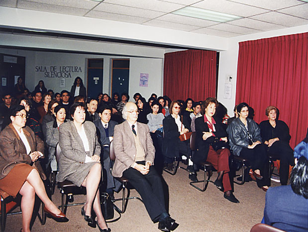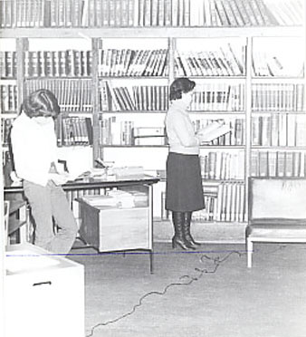 Esta biblioteca funcionaba en la casona ubicada en Dieciocho 182, y contaba escasamente con una oficina y dos salas de lectura con estantería adosada a la pared. Estas modestas instalaciones albergaron a nuestros usuarios hasta 1985, cuando se inauguró el edificio de Vidaurre 1550, donde por primera vez contábamos con un recinto digno de una institución de educación superior: el primer y segundo piso del edificio poniente, aquí por fin se pudieron mantener separadas las colecciones y los funcionarios contaron con un espacio ad hoc para desarrollar sus labores.
